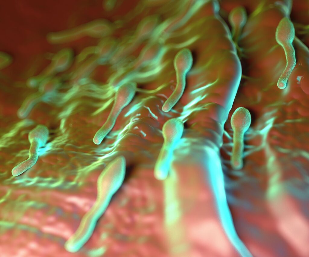 Detailný záber rastúcej dermatofytovej huby spôsobujúcej kožné ochorenia – 3D ilustrácia